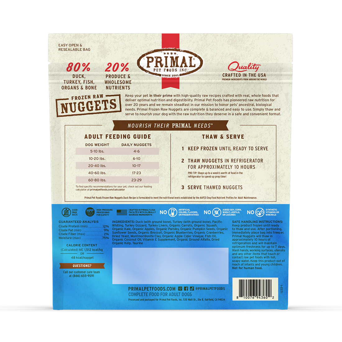 Only serve Primal raw foods when completely thawed—frozen foods can be difficult for animals to digest. Never microwave any pet food.