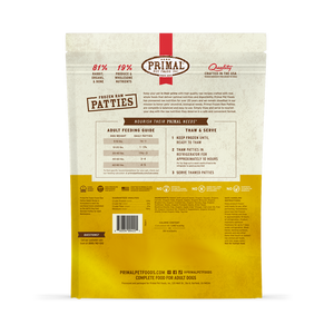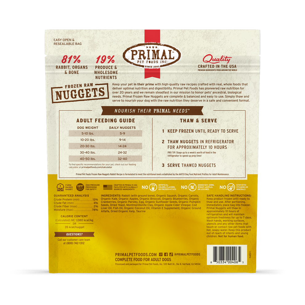Only serve Primal raw foods when completely thawed—frozen foods can be difficult for animals to digest. Never microwave any pet food.