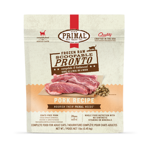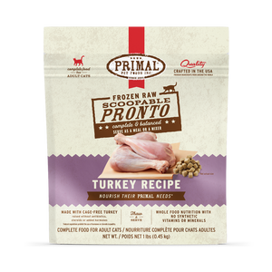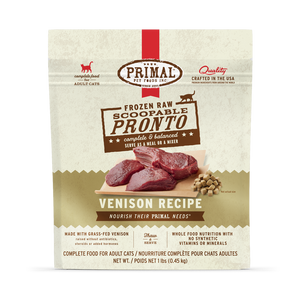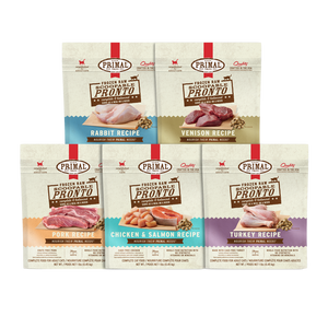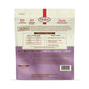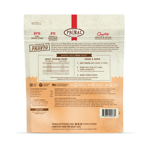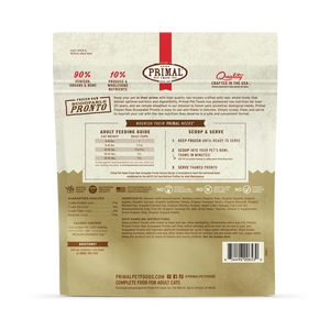 Feline Raw Frozen Pronto is available in 1 lb resealable bags.