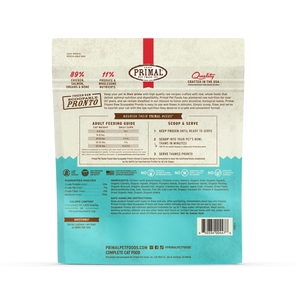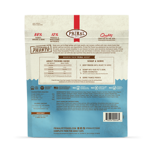 To serve, simply remove bag from your freezer, scoop the appropriate amount into your pet's bowl, and allow to thaw. Only serve Primal raw foods when completely thawed—frozen foods can be difficult for animals to digest. Never microwave any pet food.