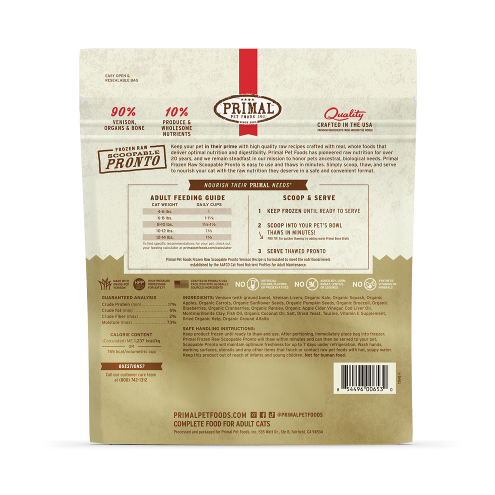 Venison (with ground bone), Venison Livers, Organic Kale, Organic Squash, Organic Apples, Organic Carrots, Organic Sunflower Seeds, Organic Pumpkin Seeds, Organic Broccoli, Organic Blueberries, Organic Cranberries, Organic Parsley, Organic Apple Cider Vinegar, Cod Liver Oil, Montmorillonite Clay, Fish Oil, Organic Coconut Oil, Salt, Dried Yeast, Taurine, Vitamin E Supplement, Dried Organic Kelp, Organic Ground Alfalfa