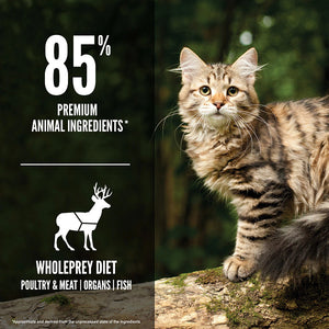 Help your pet thrive with the power of protein-rich recipes that nourish as nature intended. As obligate carnivores, modern cats are built like their ancestors and thrive on a Biologically Appropriate diet rich in protein and fat sourced from a variety of animal ingredients. ORIJEN® Tundra recipe provides your cat with the nourishing protein and nutrients they need, from fresh or raw** duck, Arctic char, rainbow trout, whole pilchard, and ranch-raised venison. With rich inclusions of Wholeprey animals, ORIJEN cat food is made with the most nutrient-dense, succulent parts of the prey to deliver the nutrition cats need.