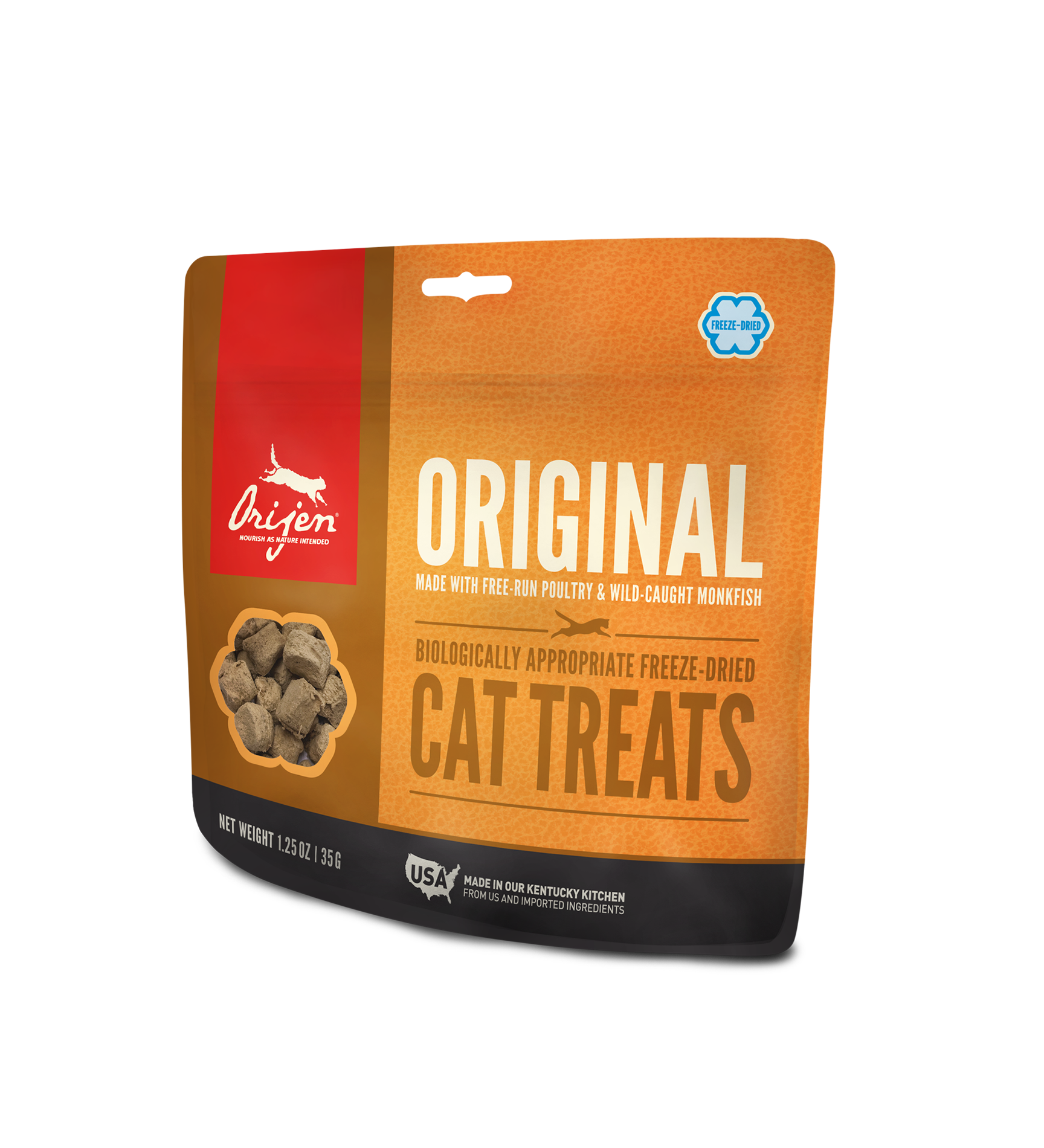 ORIJEN Original treats are gently freeze-dried, retaining all of the natural goodness of our authentic ingredients without the addition of synthetic preservatives. Our freeze-dry kitchen is equipped with nitrogen tunnels which flash-freeze ingredients at extremely low temperatures (-60F), locking in their vitalizing nutrients.