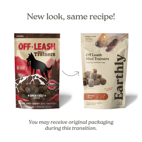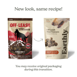Professional dog trainers will tell you that the perfect training treats follow the three S's: soft, smelly and small. Treats like these ensure your pet will stay motivated and focused during your training session. We designed Off Leash Mini Trainers with this in mind, while making sure to only use healthy ingredients.