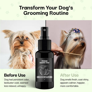 Premium Grooming Spray, Dog Cologne Spray that is long lasting after bath. Its a dog perfume spray deodorant that is safe for dogs. Eliminate and deodorize the smelly dog. Fragrance is hand-crafted and made up of essential oils. Our perfumist has blended the deodorizing dog cologne spray that your family and friends are sure to enjoy. Top quality for both male and female dogs.