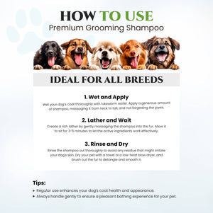 Premium Grooming Shampoo: Elevate your pup's grooming routine with our premium dog shampoo. Crafted with the utmost care and expertise, our formula combines top-quality ingredients to deliver exceptional results. Whether your dog needs a quick freshening up or a deep cleanse, our puppy shampoo is up to the task. Say...