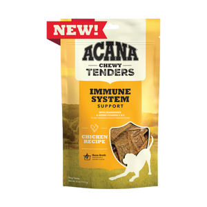 ACANA™ Chewy Tenders will satisfy your dog with delicious, nutritious and lasting enjoyment. Crafted with ingredients you can feel good about, our Chewy Chicken Recipe is rich with protein from savory chicken and bone broth, and antioxidant-rich cranberries and added vitamin c & e for immune support. Sweet honey adds a soft, chewy texture that keeps your dog satisfied, making Chewy Tenders a perfect snack for moments when you want to treat your dog to delicious flavor and happiness.