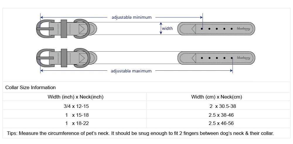 Crafted with high-quality genuine leather, this collar offers unique features and durability. The attention to detail, from the roller-buckle hardware to the engraved Blueberry Pet tag, showcases our commitment to quality.