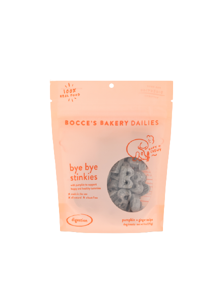 We are not the only ones in need of some daily TLC. Let's keep your pup feeling not a day over one, and extra fresh for those sloppy 'welcome home' smooches. Bye Bye Stinkies Dailies are loaded with fiber-rich pumpkin, savory ginger and charcoal to support daily digestion with every treat.