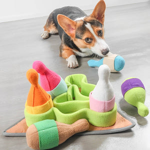 Elevate your dog's playtime with the Bowling Ball Pet Snuffle Mat from Cheerhunting.
