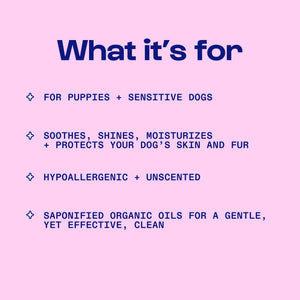 For puppies, older & sensitive dogs: Made with love and specially formulated with natural goodness to give your pup a gentle, yet effective clean. Gentle formula: Hypoallergenic and unscented shampoo and conditioner in 1. Organic essential oils: For a gentle (yet effective) clean. Softer, shinier & healthier fur + skin:...