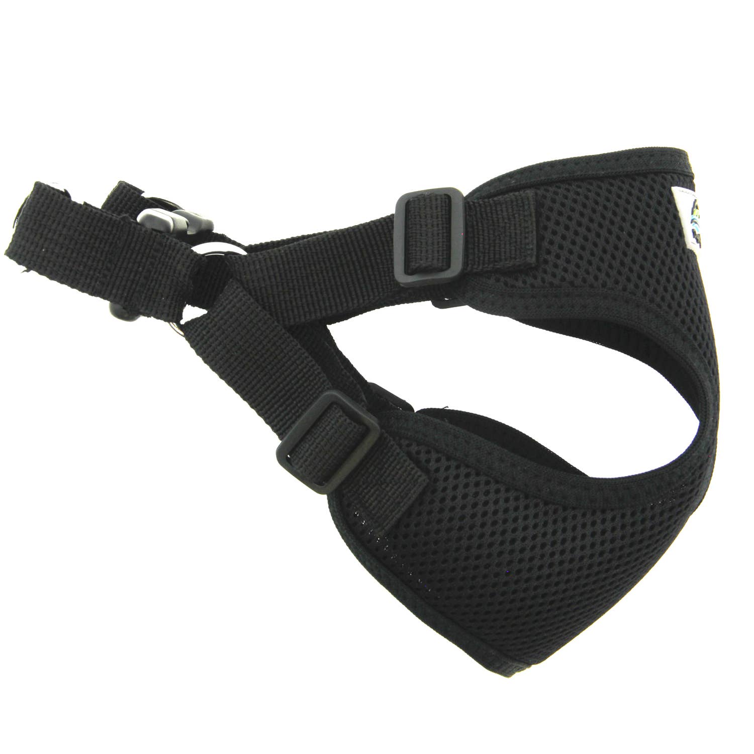 Help your customers be ready for anything with this easy-to-use Wrap and Snap Choke-Free Dog Harness in classic Black! -Choke Free Design -Step in mesh harness -4-way adjustable straps -Quick-snap buckle closure on back -Double D-rings for leash attachment for added security. -100% Polyester, Hand wash separately, line dry. -Available...