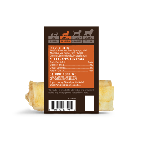 - THERE’S NO-THING LIKE IT: No-Hide is the healthy alternative to rawhide & bully sticks. These all natural No-Hide Rolls are made with a festive blend of pumpkin, cinnamon, & goat’s milk. Great for teeth and gums.