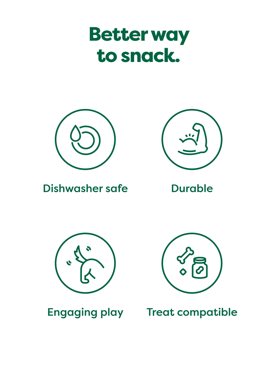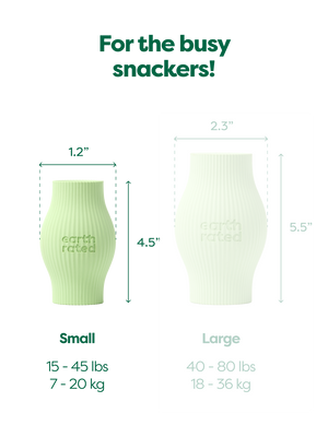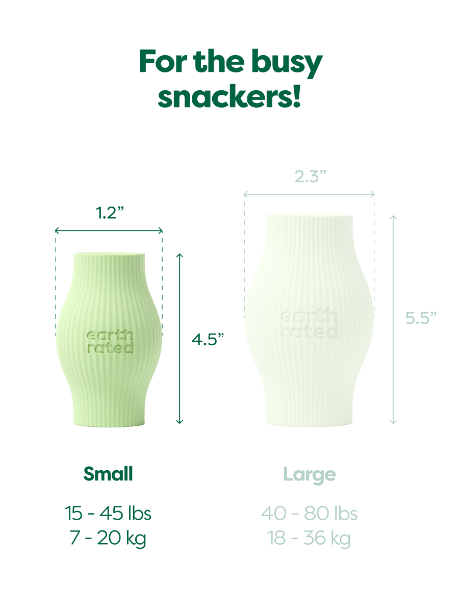 An intuitive and fully-rewarding experience, the Earth Rated treat toy has been thoughtfully designed, rigorously tested and made from responsibly sourced natural rubber. It is dishwasher and freezer safe—making it the perfect cool toy for teething pups or on hot days. It’s also soft on floors and furniture, so you can say no to scratches and yes to tons of engaging play.