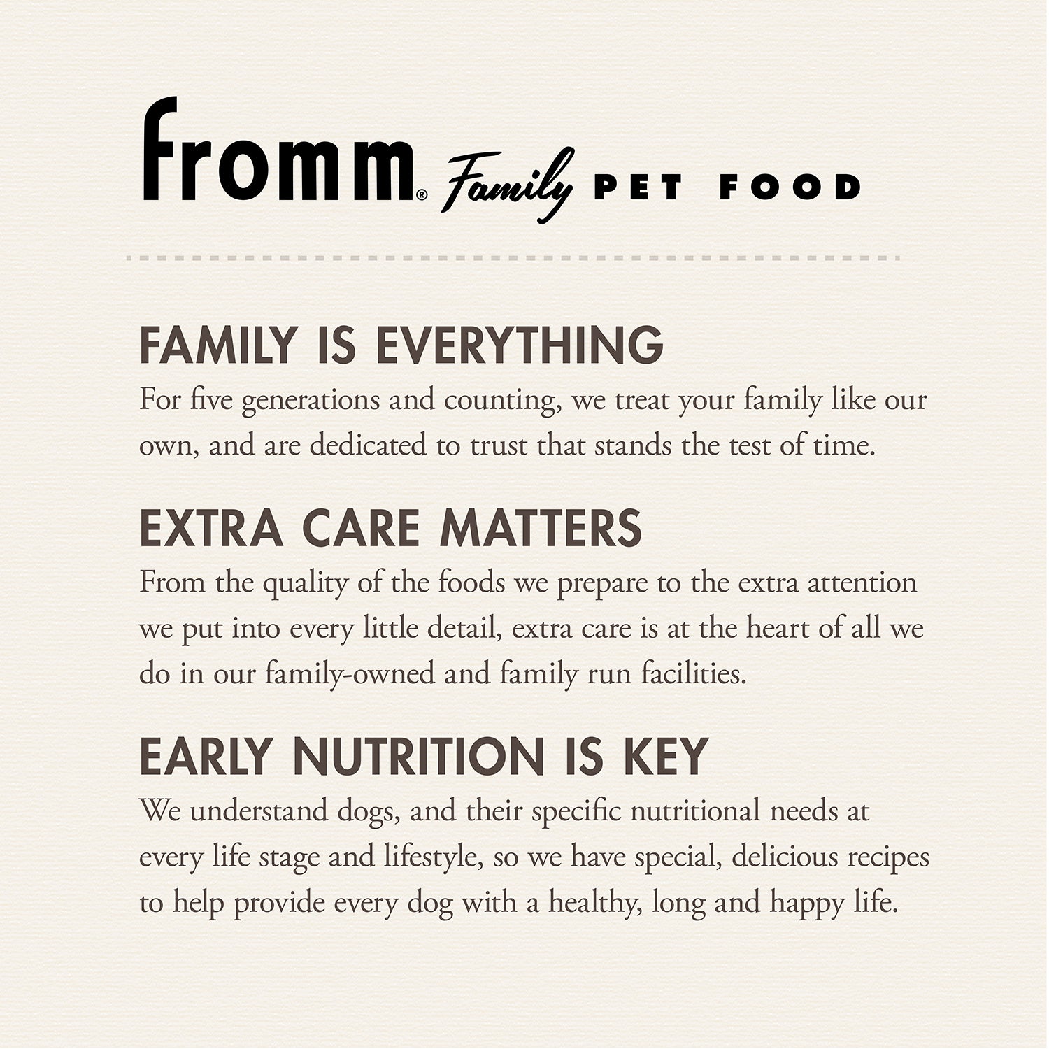 Fromm® Puppy Chicken & Salmon Pâté Food for Dogs is formulated to meet the nutritional levels established by the AAFCO Dog Food Nutrient Profiles for gestation/lactation and growth, including growth of large size dogs (70 lb. or more as an adult).