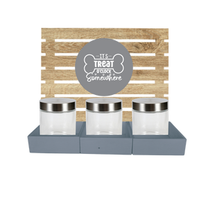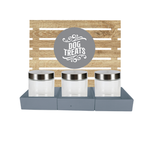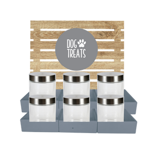Featuring 3 or 6 shelf in white chalk & distressed oak finish with clear canister jars for easy treat spotting, it keeps snacks fresh and ready for tail-wagging moments. Organized and fun, it’s the perfect way to spoil your pet with a variety of tasty bites all in one place