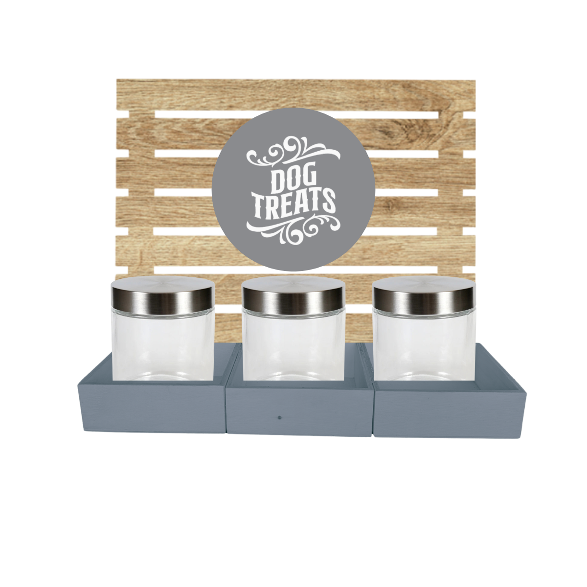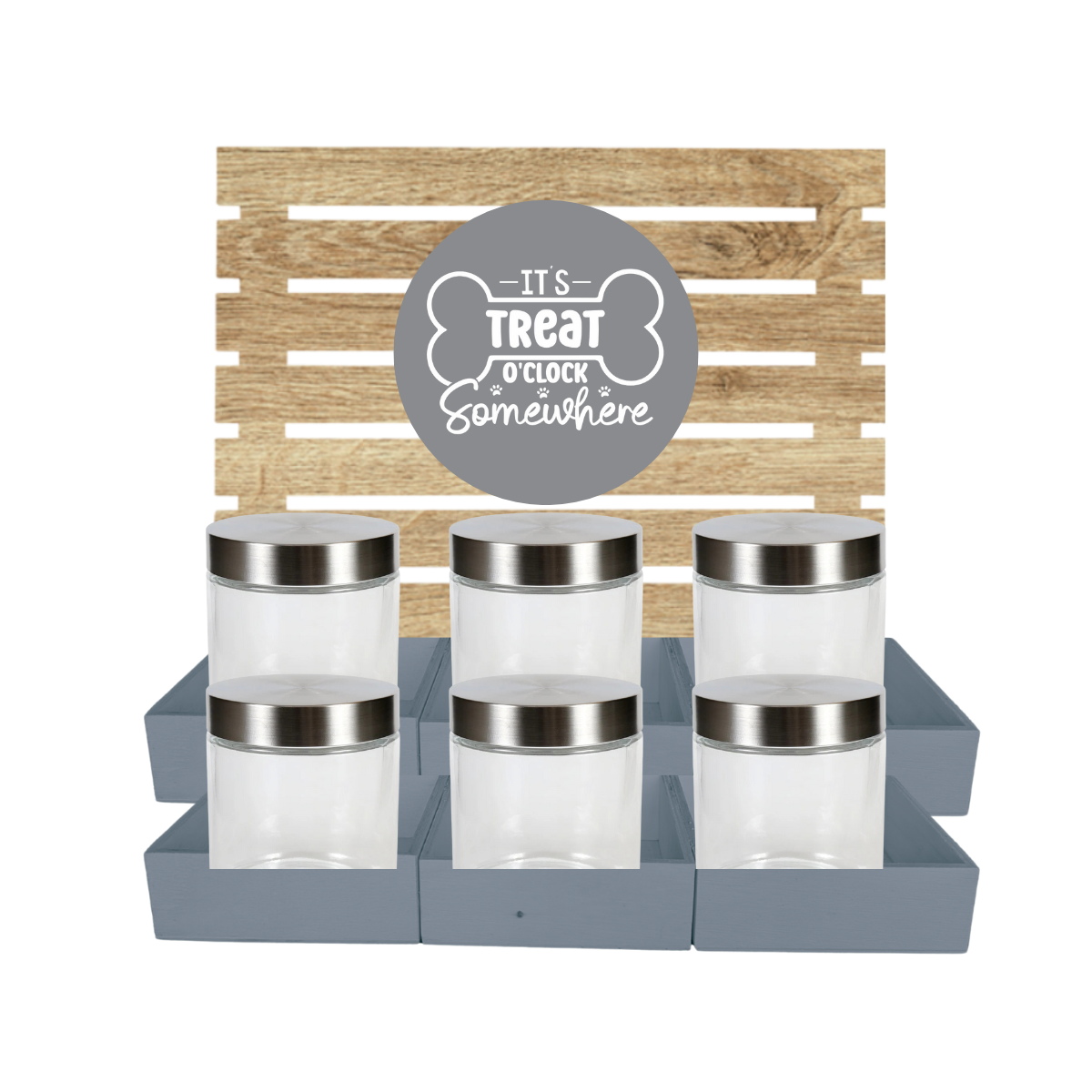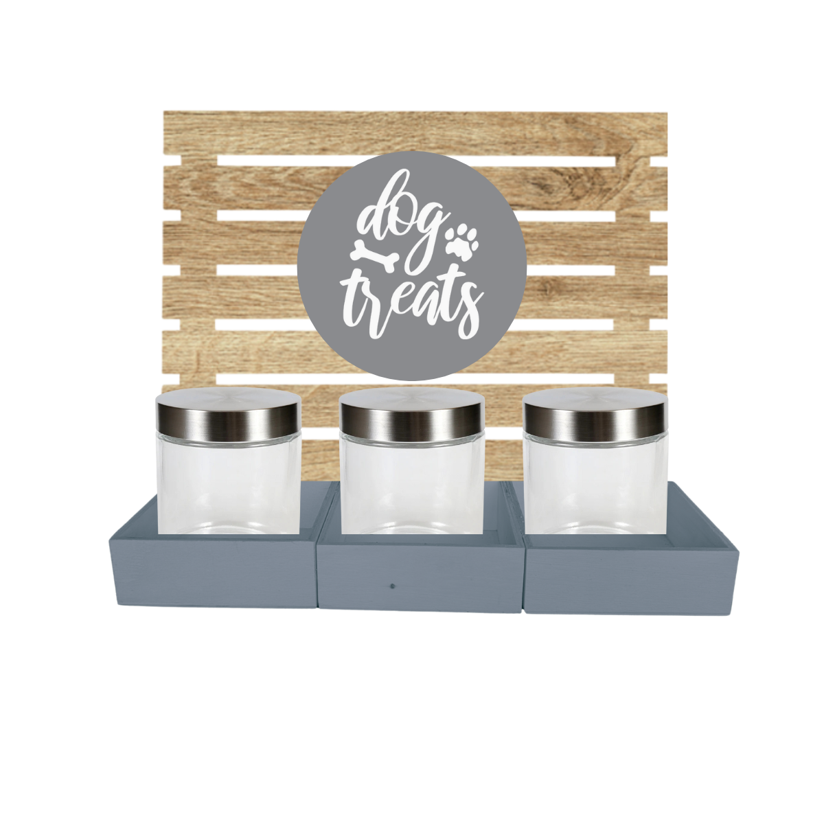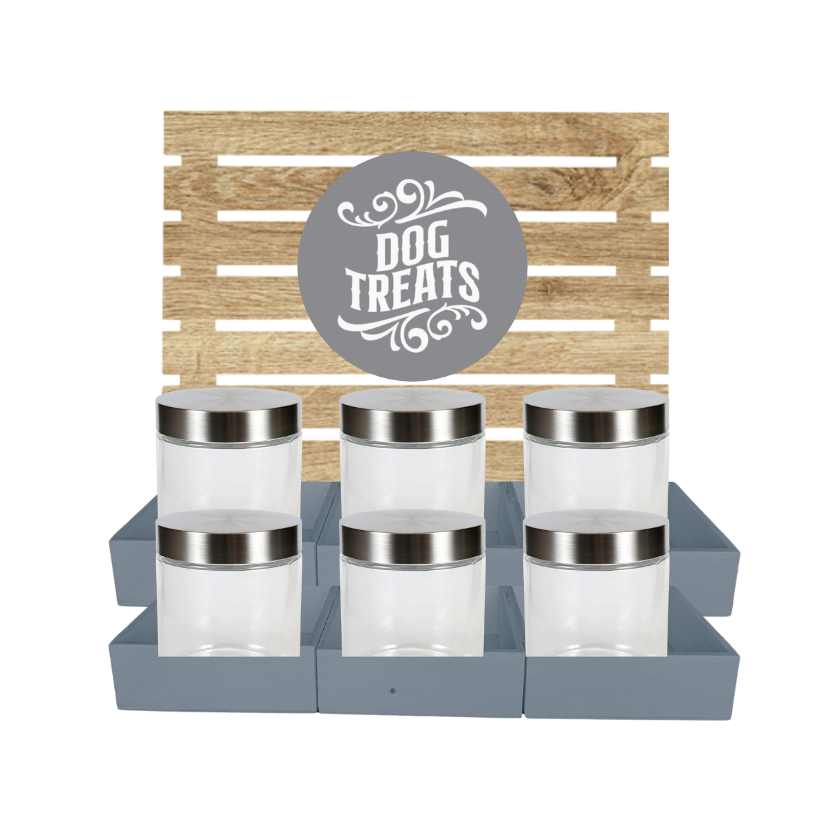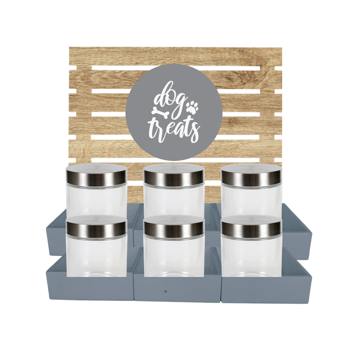 Grey Dog Treat Jar Bar w/ Stainless Lid Jars