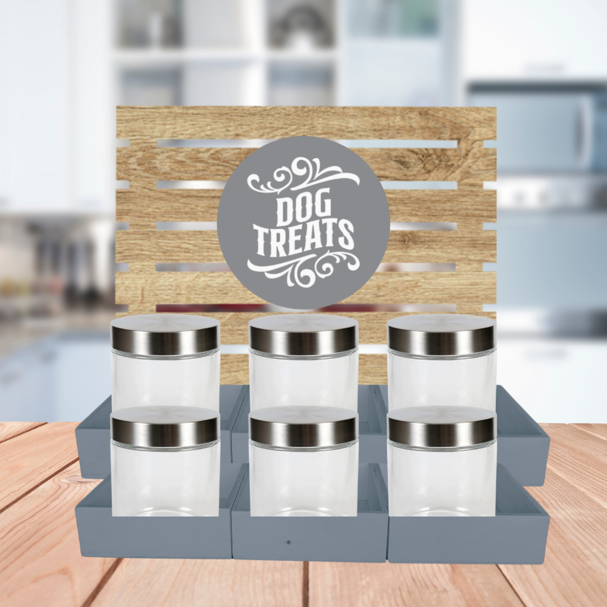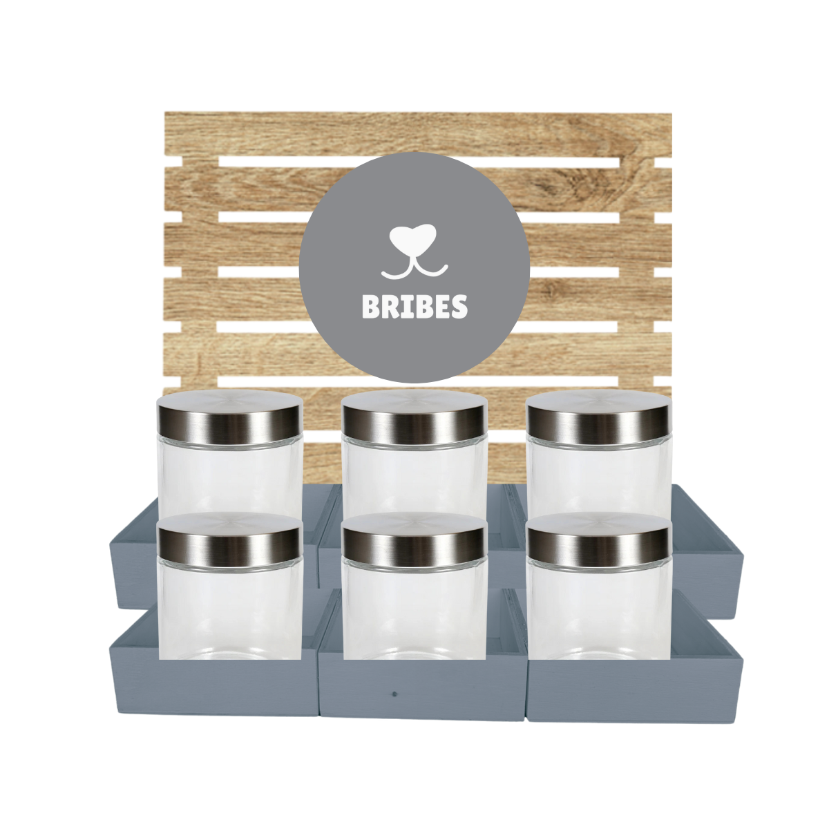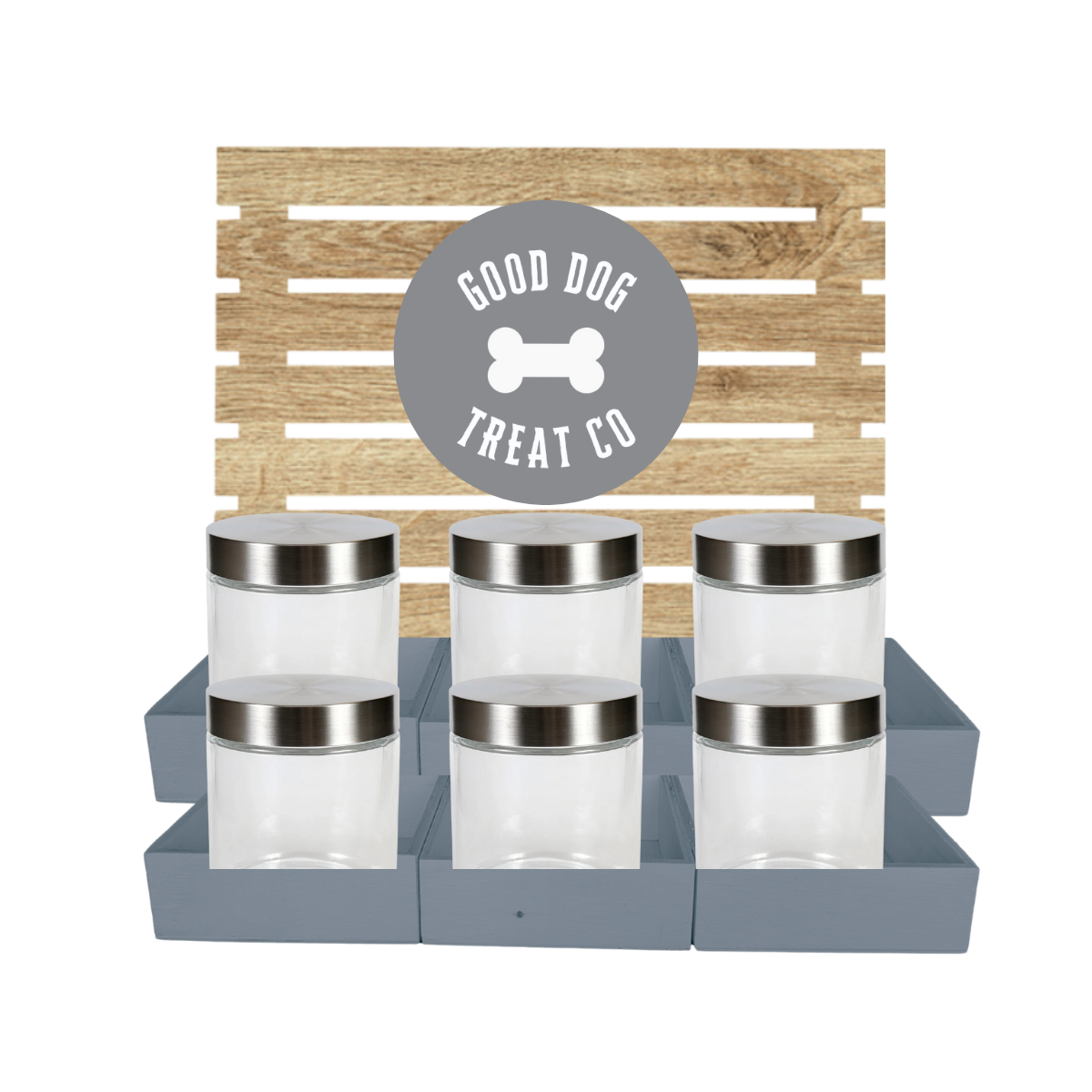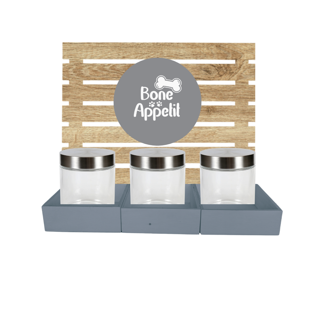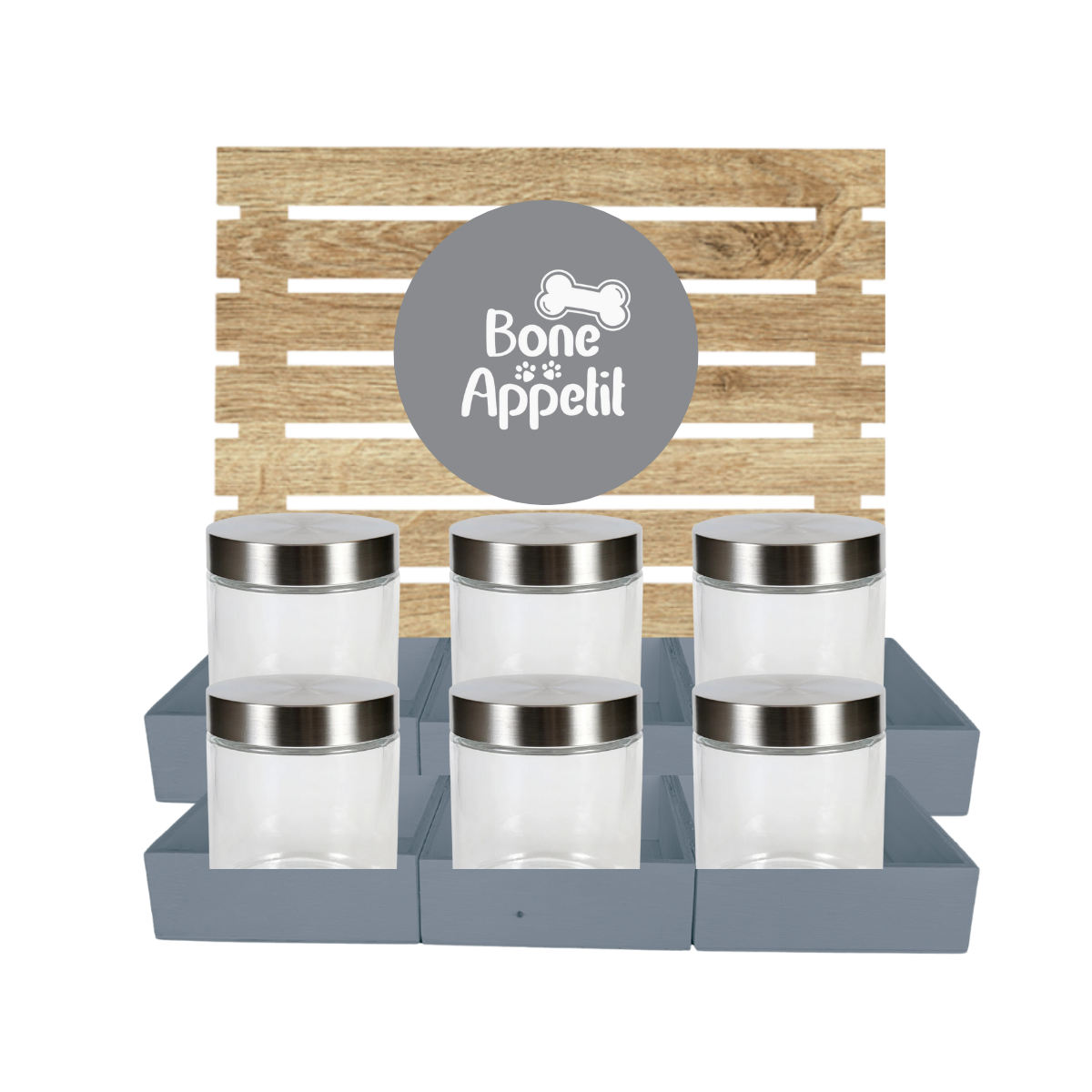 Grey Dog Treat Jar Bar w/ Stainless Lid Jars