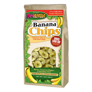 Description: K9 Granola Factory's Banana Chips are a tasty treat that dogs are sure to love! Simply made with all natural bananas, this crunchy treat is nature's way of providing a sweet treat for your dog and makes the perfect pick me up at any time of day. Banana Chips...