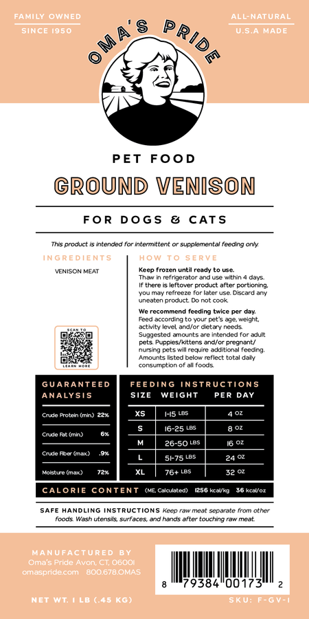 Oma's Pride Raw Frozen Ground Venison 1lb