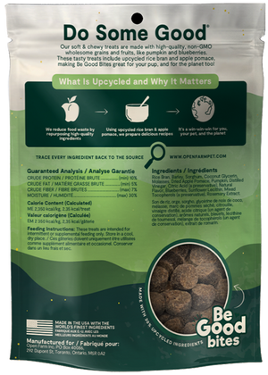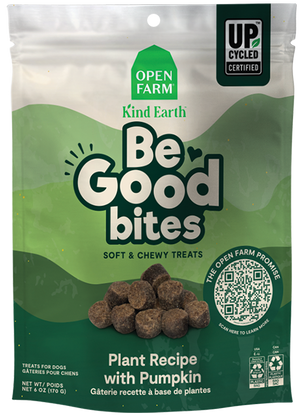 Our Plant Recipe with Pumpkin Soft & Chewy treats are made with high-quality non-GMO wholesome grains & fruits, like pumpkin and blueberries. These treats included 30% upcycled ingredients, making Be Good Bites great for your pup and the planet too!