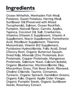 RawMix features our protein-packed kibble covered in a nutritious bone broth and freeze dried raw coating, with added chunks of freeze dried raw. Crafted with a blend of wild-caught whitefish, salmon and rockfish, this delicious recipe includes nutrient-dense meat, organ, and bone with non-GMO grains, fruits, and veggies.