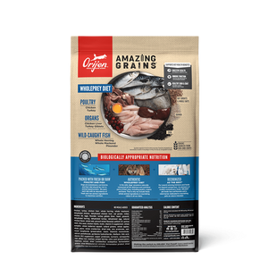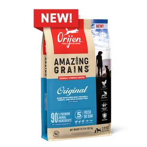 ORIJEN AMAZING GRAINS™ ORIGINAL DOG FOOD is formulated to meet the nutritional levels established by the AAFCO Dog Food Nutrient Profiles for All Life Stages, including growth of large size dogs (70 lb or more as an adult)