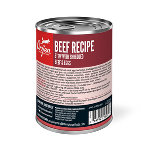ORIJEN® Beef Recipe Stew Dog Food is formulated to meet the nutritional levels established by the AAFCO Dog Food Nutrient Profiles for maintenance.