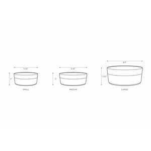 Medium: 2" high with a 6.25" diameter. This bowl has a 4 cup capacity