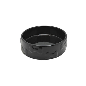 Our "Manor Black" Pet Bowl is a designer dish in sleek, deep black with a stylish bone embossed exterior. Each premium quality pet bowl is crafted from heavyweight, FDA approved ceramic that stands strong against slippage and spills. It's durable, chew proof stoneware is 100% dishwasher and microwave safe. A unique, brilliantly colored exterior makes meals fun!