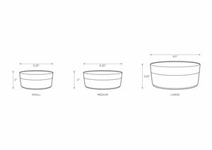 Medium: 2" high with a 6.25" diameter. This bowl has a 4 cup capacity.