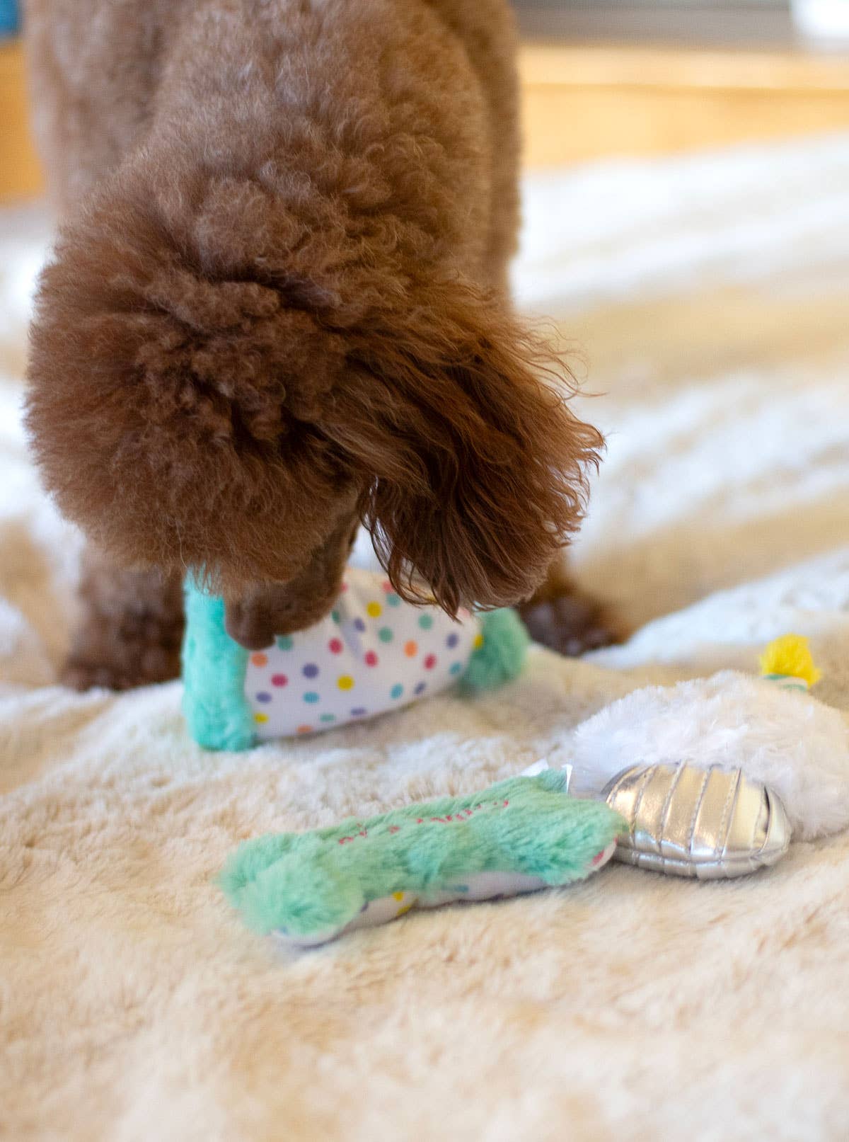 Triple the squeaks, triple the fun! This adorable trio of ThoozyPet plush toys is designed to bring joy to small pups with big birthday energy. Whether your dog loves to toss, chase, or cuddle, these cute little toys are perfect for playful paws. Each toy is thoughtfully crafted with securely...