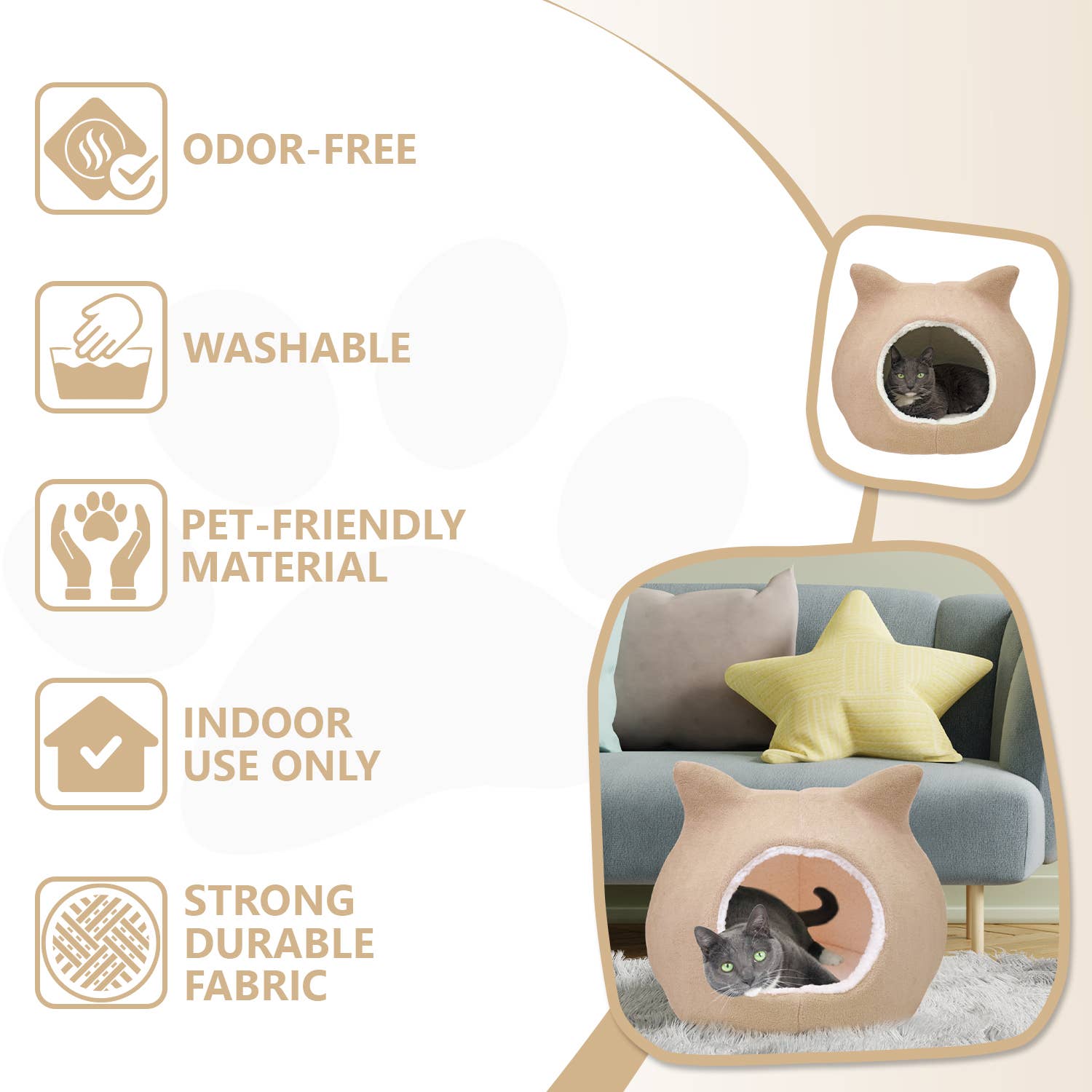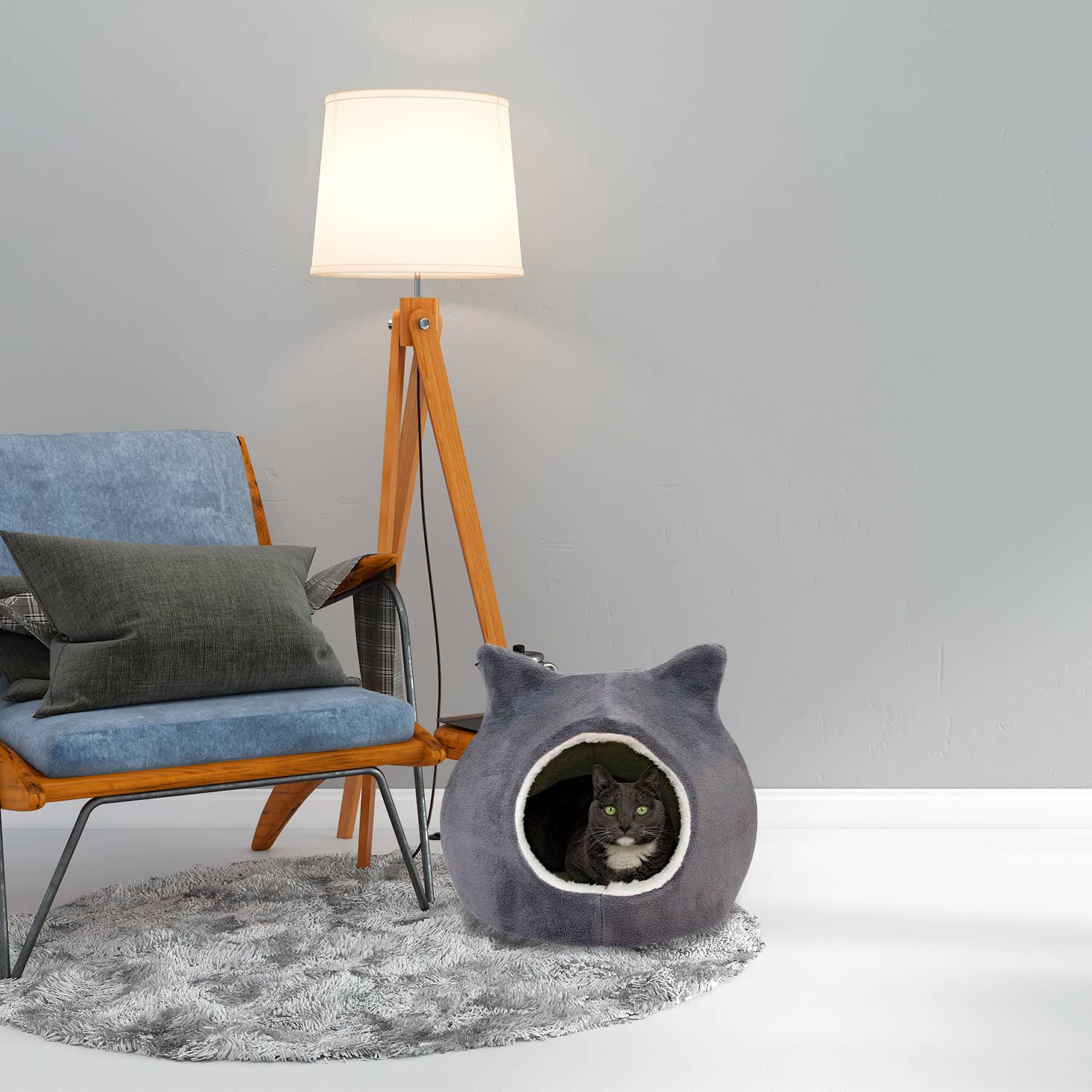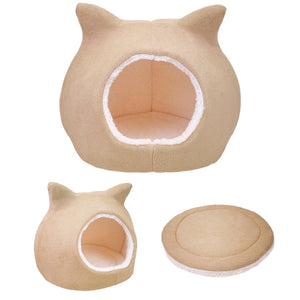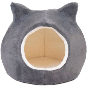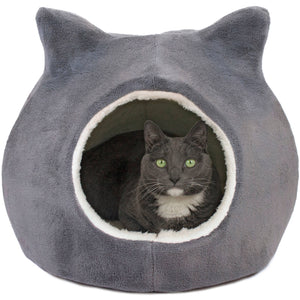 The product offers your cat a spacious comfortable hideaway. This soft sherpa lined cave features cat-like ears to remind the dog whose bed is whose! Folds up for easy storage. Perfect for cats who like to curl up in an enclosed space. Soft plush sherpa lines the inside while exterior coral fleece foam walls give the cave support. The ideal nap spot cats/kittens. Good for pets up to 15 lb. Measures 17'' H x 18'' W x 18'' D. Opening measures 9.00'' H x 9.00'' W. Product Weight 1.25 lb.