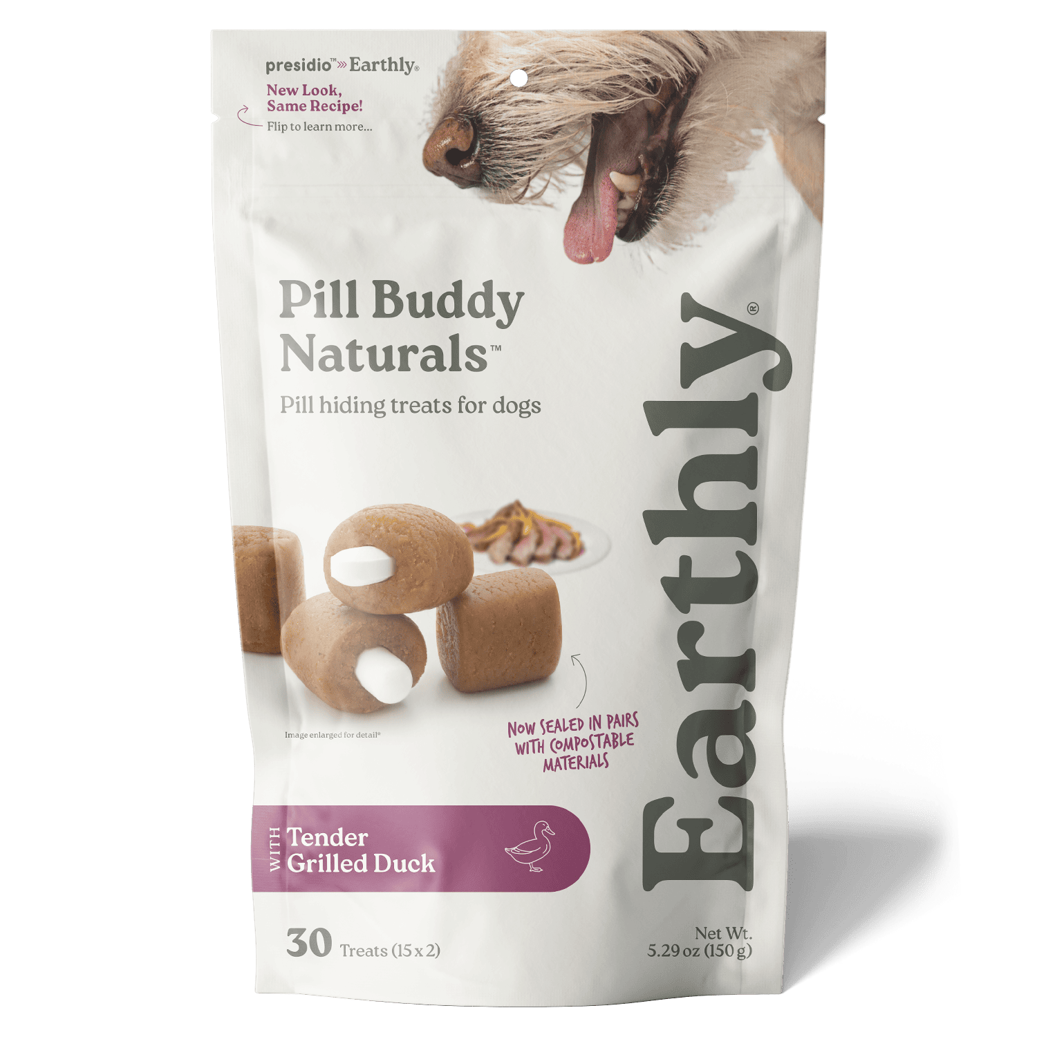 Pill Buddy Naturals will accommodate almost any size pill or capsule intended for dogs—simply ‘push, squeeze and feed’. Each Pill Buddy is wrapped in pairs to preserve freshness and functionality, and to prevent drying or cracking.