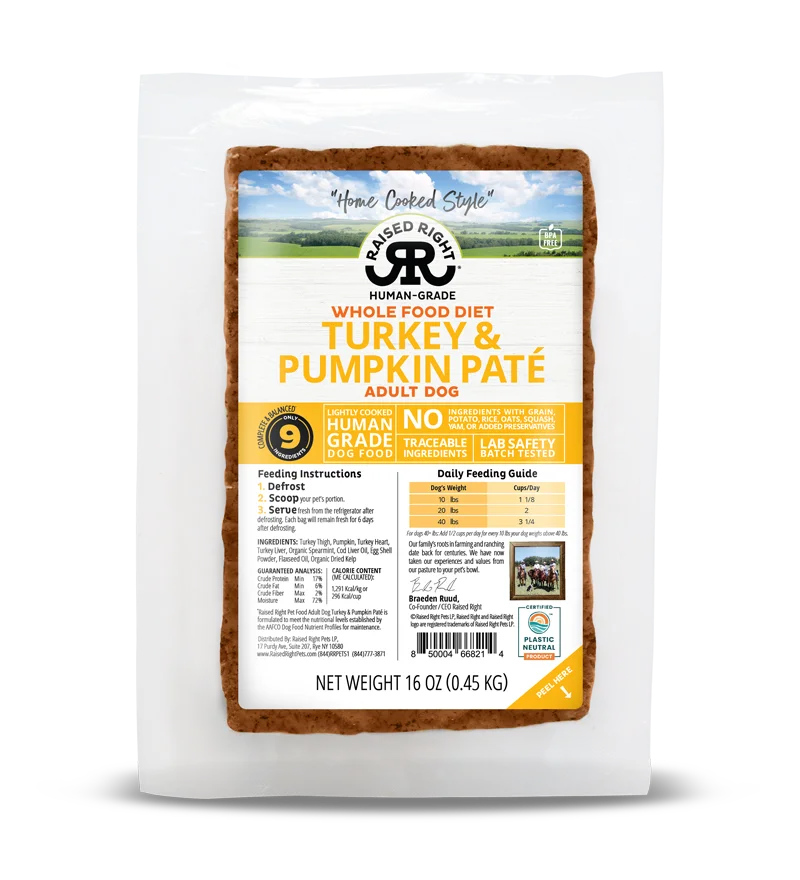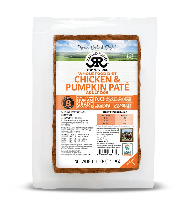Raised Right Frozen Whole Food Diet Human Grade Recipes for Adult Dogs