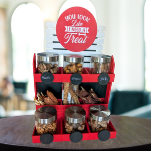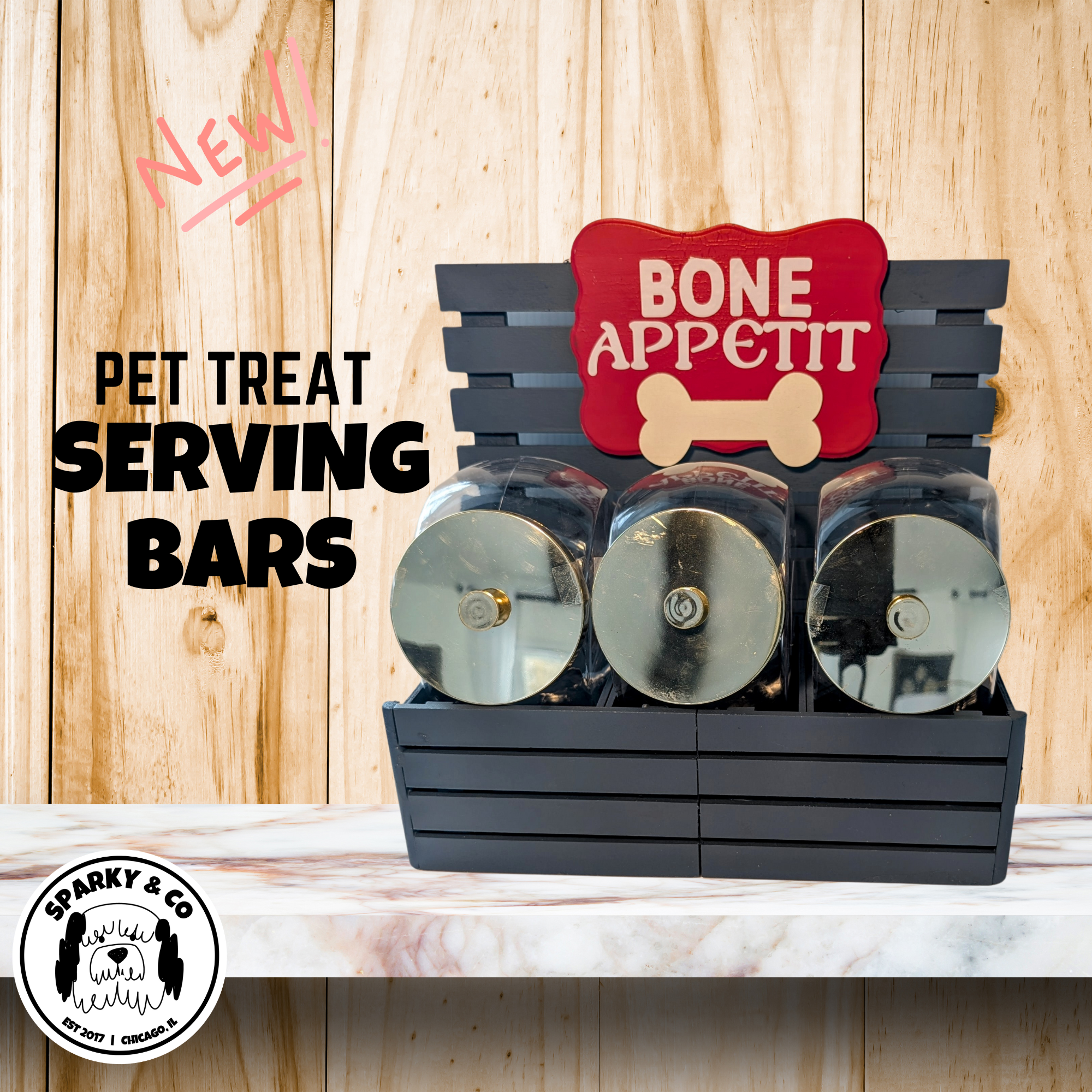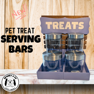 Your dog has more than one treat, right,? Have your pets favorite treats at the ready with our new handmade pet treat serving stations. Now you can showcase your pet's favorite treats with style!