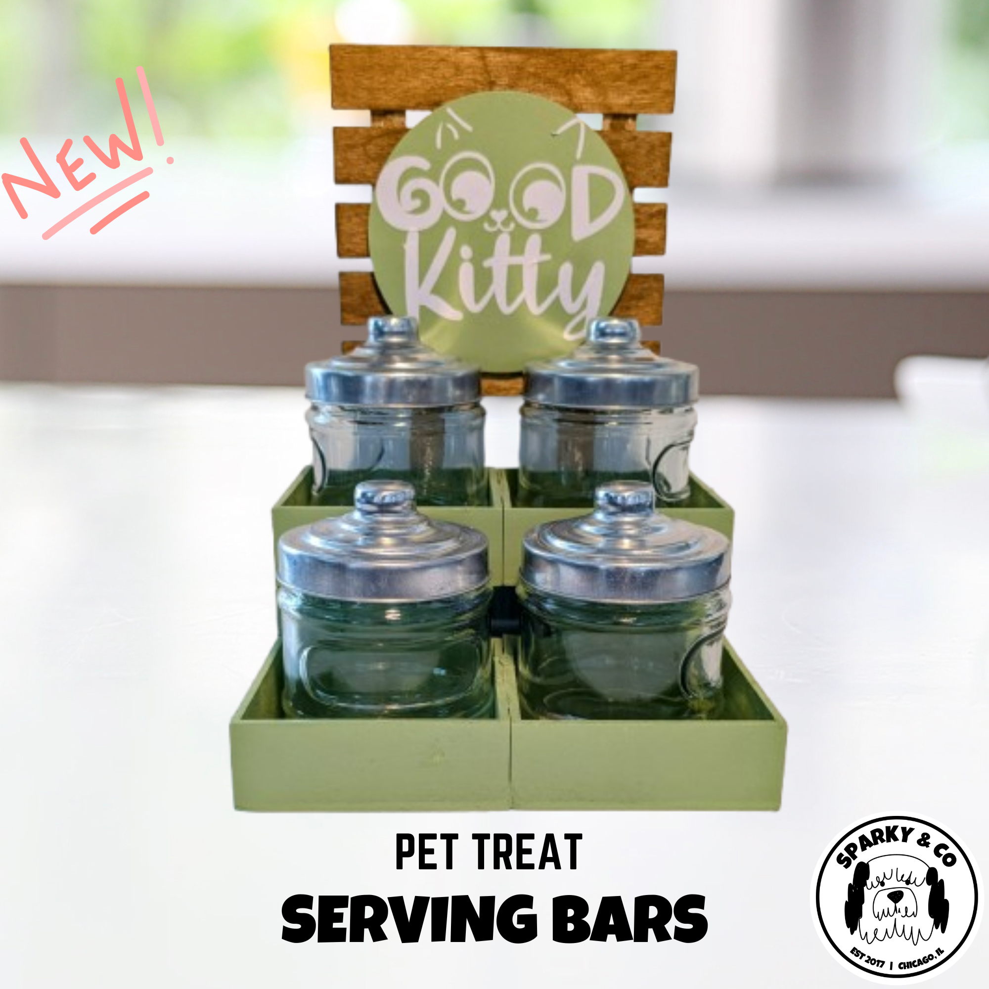 Red 6 Jar - Treat Bar, Green 4 Jar - Good Kitty, Blue 4 Jar - Good Kitty Treat Co, Gray 4 Jar - Catnip |