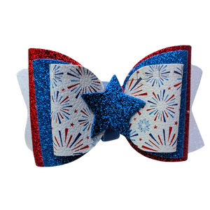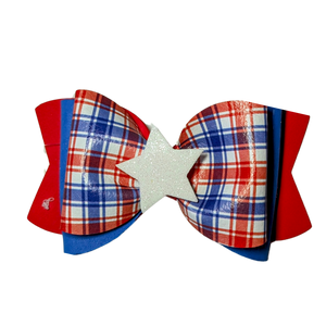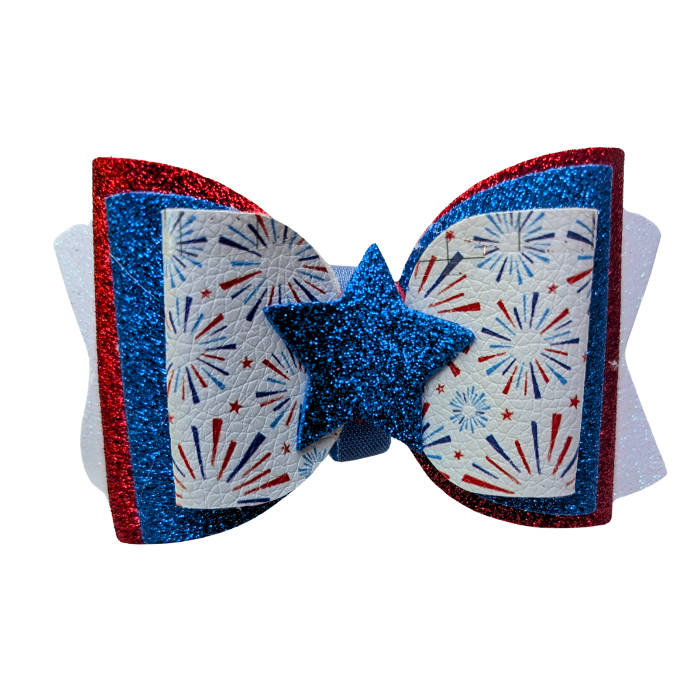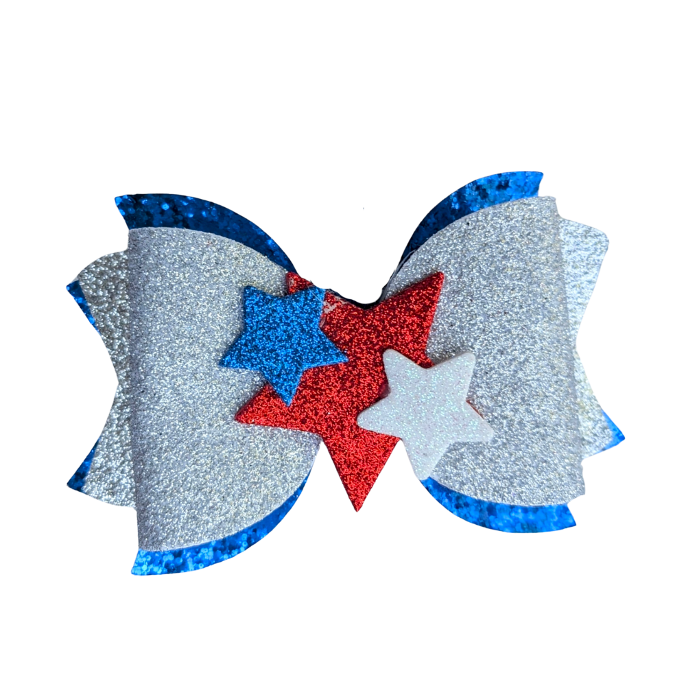 Show off your dog's pride with our mixed media Star Spangled Bow Collection