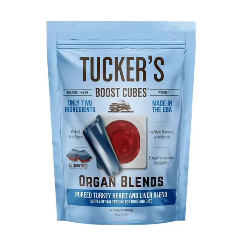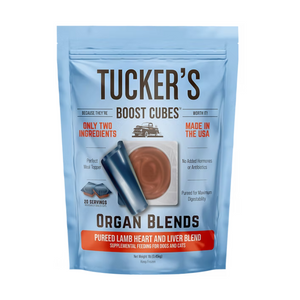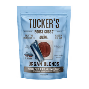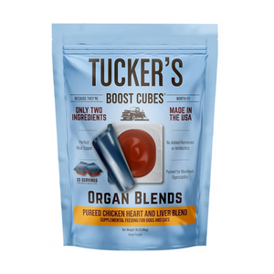 Tucker’s Boost Cubes make easy additions to Kibble, Freeze-Dried, and Raw diets. Just peel off the blue top and serve thawed or frozen. Have fun with Tucker’s Boost Cubes adding key nutrients to your pet’s favorite meal or snack!