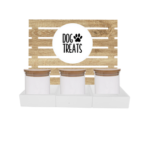 Featuring 3 or 6 shelf in white chalk & distressed oak finish with clear canister jars for easy treat spotting, it keeps snacks fresh and ready for tail-wagging moments. Organized and fun, it’s the perfect way to spoil your pet with a variety of tasty bites all in one place