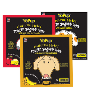 YöPup, frozen yogurt treats are manufactured in the USA by a dedicated and knowledgeable team of dog lovers. Yogurt is a well-known ‘superfood’ that is extremely nourishing and contributes to overall well-being. YöPup adds billion of live cultures to each cup of yogurt; multiple strains known to be beneficial for dogs. YöPup provides a cool, long lasting experience that will calm your dog. Fun for them and entertaining to watch!